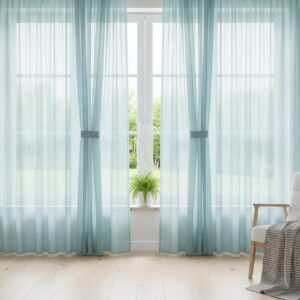 Прозрачные шторы предпочтительны в гостиных и на кухнях, где необходимо естественное освещение. Их изготавливают из легких тканей: тюля, органзы или шифона. Органза может иметь атласную или матовую поверхность. Традиционная органза — это шелк, а современные материалы — это сочетание полиэстера и нейлона. Вуаль и батист — тоже прозрачные ткани, каждая со своей фактурой. Батист – более тонкий и простой материал, чем вуаль. Оба типа штор в основном белые, кремовые и цвета слоновой кости.