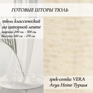 Готовые шторы тюль грек-сетка Vera от Arya Home – это оптимальное сочетание качества, эстетичности и функциональности. Выбрав такое решение для вашего оконного декора, вы сможете создать комфортную атмосферу в помещении, сохранить естественное освещение и защититься от неприятных внешних факторов.