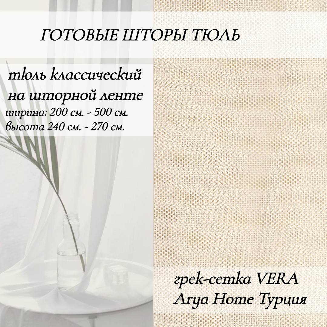 Готовые шторы тюль грек-сетка Vera от Arya Home – это оптимальное сочетание качества, эстетичности и функциональности. Выбрав такое решение для вашего оконного декора, вы сможете создать комфортную атмосферу в помещении, сохранить естественное освещение и защититься от неприятных внешних факторов.