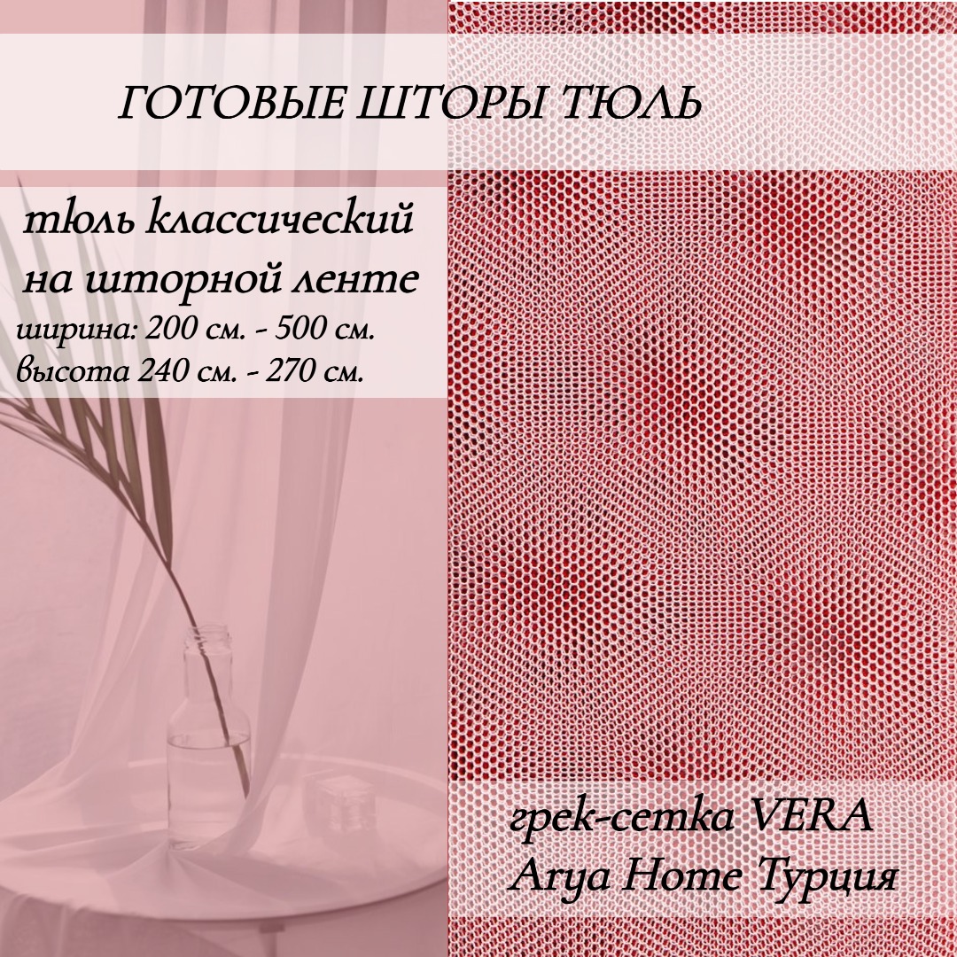 Готовые шторы тюль грек-сетка Vera являются одним из наиболее популярных вариантов оконного декора. Эта разновидность тюля отличается своей уникальной структурой, состоящей из ячеистых отверстий, которые создают эффект особого воздушного пространства и легкости.