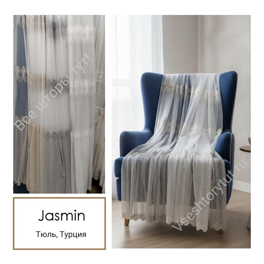 [estimation_form form_id=»11″]Хотите создать уютный и стильный интерьер в своем доме? Тогда тюль гардинный Jasmin — это то, что вам нужно! Это качественный продукт, произведенный в Турции, который отличается высоким качеством и современным дизайном.