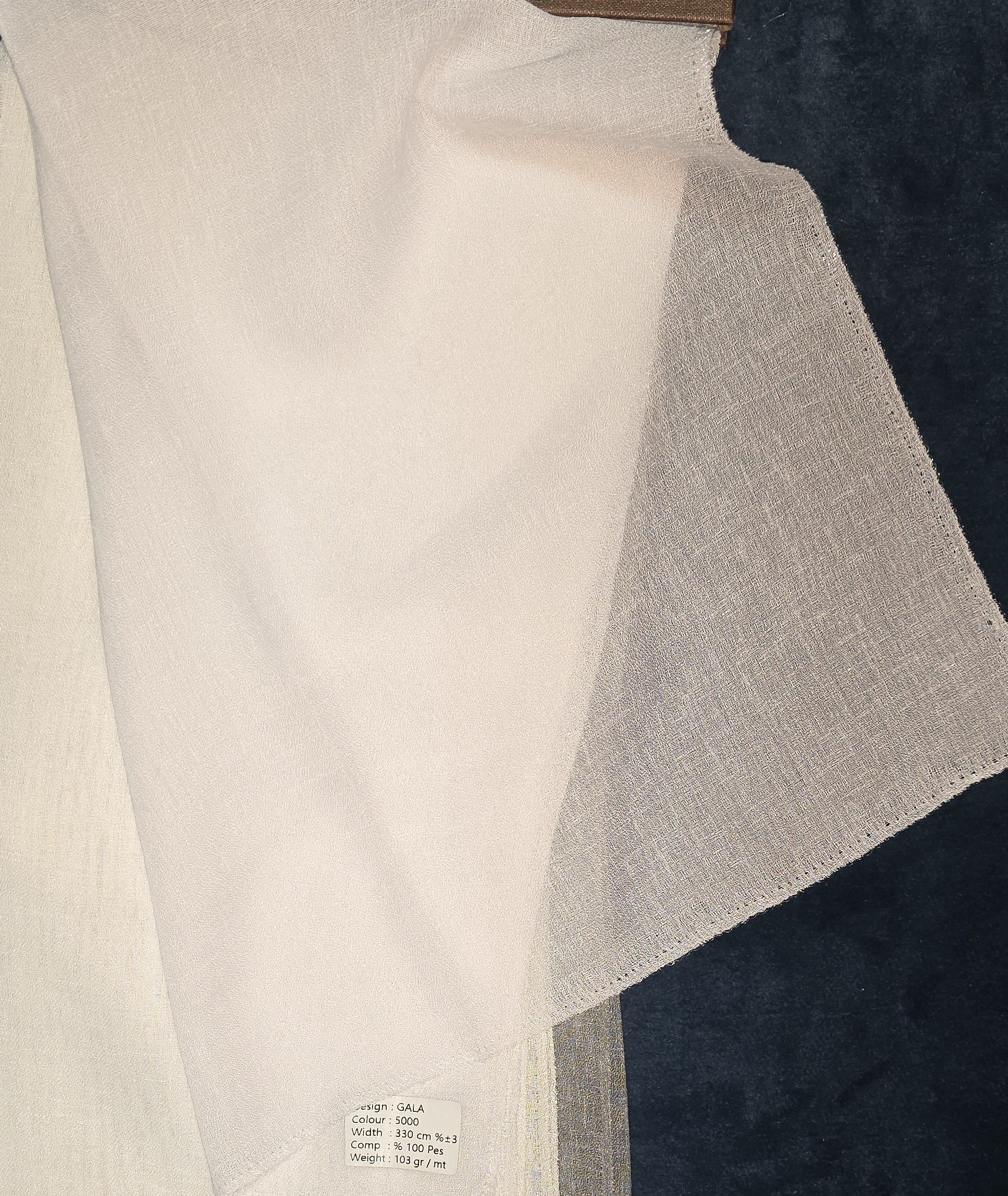 Очень низкая плотность 103 г/м² — ткань сверхлёгкая, почти невесомая. Она создаёт мягкую, струящуюся драпировку, пропускает практически 100% солнечного света, не создавая затемнения. Подходит для окон, выходящих на север, или для помещений, где важно сохранить максимальную освещённость.